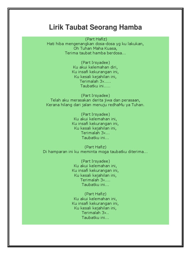 Lirik Taubat Seorang Hamba Pdf